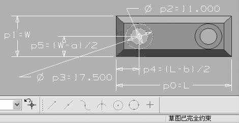草圖創(chuàng)建后, 需要對其進行定位和約束。是否具有約束是草圖區(qū)別于曲線的基本特征, 也是能否實現(xiàn)參數(shù)化的關鍵一環(huán)。在進行草圖約束前一定要注意對截面進行細致的約束分析, 避免出現(xiàn)少約束或過約束的情況, 否則將無法創(chuàng)建合格的參數(shù)化模型。