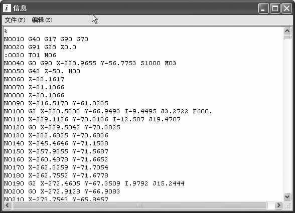 圖 10 對凹模粗加工生成的 G 代碼