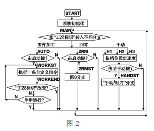 3 為主控軟件框圖 3 考慮了多指令共段和共段指令執(zhí)行順序 TST 分支實現(xiàn)除 T00 指令外全部 T 指令的功能 M1S 分支實現(xiàn) M03 M04 M06 M97 M98 M99 M21 M22 M23 M24 M25M26 M27 M28 等指令的功能 M2S 分支實現(xiàn)了 M00,M02,M05,M30,M20 等指令的功能 也考慮了模態(tài)指令的處理