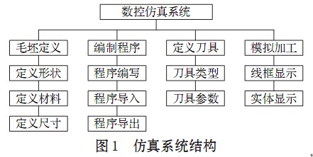 根據(jù)實(shí)際零件加工的操作順序, 數(shù)控加工仿真程序設(shè)置了零件定義、 程序調(diào)用、 刀具選擇等功能。系統(tǒng)的頂層功能結(jié)構(gòu)如圖1所示。