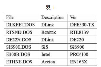 下面列出一些 DOS 客戶(hù)端網(wǎng)卡安裝常用的 NDIS 網(wǎng)絡(luò)卡驅(qū)動(dòng)程序文件名,如表 1所示