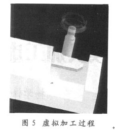 數(shù)控編程完成后,單擊“加工”按鈕,系統(tǒng)自動(dòng)判斷程序是否正確,正確的編程將進(jìn)入下一環(huán)節(jié),在加工顯示區(qū)播放加工過(guò)程,如圖5所示,錯(cuò)誤的編程將出現(xiàn)程序錯(cuò)誤提示,需要重新檢查并修改數(shù)控程序。