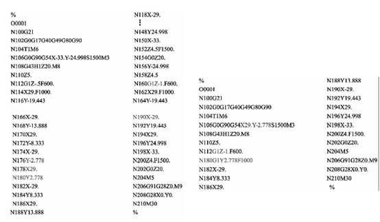 ②查找中斷點的XYZ 坐標,因為XYZ 是模態(tài)指令, 如果中斷程序段本行沒有, 則向上查找最近的XYZ 坐標即可,分別是X29. Y-2.778 Z-1。