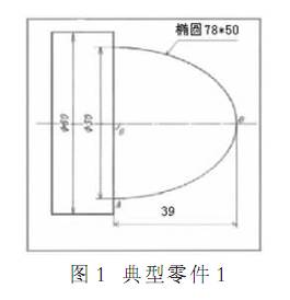 如圖 1 所示零件 該零件編程時以橢圓右端中心 O 點作為編程原點 由于加工的橢圓極角 為 90 所以可以采用將橢圓極角設(shè)為自變量 當橢圓極角從 O 點 0 逐漸增加到 A 點 90 時 根據(jù)橢圓參數(shù)方程求得橢圓 OA 段上每個點所對應(yīng)的短軸值和長軸值 然后再算出橢圓 OA 段上每個點在工件坐標系中所對應(yīng)的 X 值和 Z 值 從而加工出橢圓 編程中采用條件轉(zhuǎn)移 IF 語句 該橢圓的參數(shù)方程 X=39*COS ,Y=25*SIN 其中 X 表示橢圓長軸值 Y 表示橢圓短軸值 表示橢圓極角