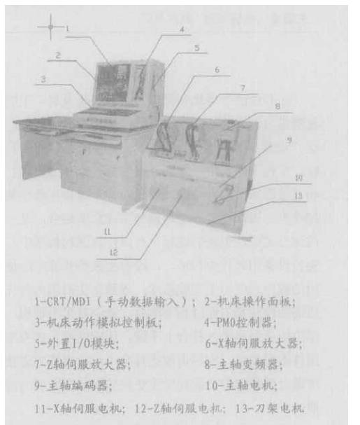 NBF-1型FANUC數(shù)控(車(chē)床)系統(tǒng)綜合實(shí)驗(yàn)裝置主要是由BEIJING-FANUC先進(jìn)的PM0數(shù)控車(chē)床系統(tǒng);外置I/O 模塊;全數(shù)字伺服放大器和β伺服電機(jī);主軸無(wú)級(jí)變頻調(diào)速和電機(jī);刀架電機(jī);機(jī)床操作面板和其控制機(jī)床模擬信號(hào)板以及運(yùn)動(dòng)執(zhí)行臺(tái)等組成。如圖1所示。