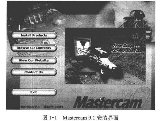 雙擊光盤(pán)Mastercam 9.1目錄下Setup.exe文件,啟動(dòng)安裝界面,如圖1-1所示。