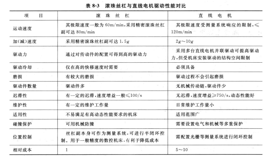 傳統(tǒng)進(jìn)給系統(tǒng)因剛度低、慣量大、傳動效率低、傳動誤差大、機(jī)械傳動錨結(jié)構(gòu)復(fù)雜,難以獲得高的進(jìn)給速度和加速度,無法滿足高速機(jī)床的加工要求。針對傳統(tǒng)進(jìn)結(jié)系統(tǒng)存在的問題,世界上許多國家的研究單位和生產(chǎn)廠家對高速機(jī)床的新型進(jìn)緒系統(tǒng)進(jìn)行了系統(tǒng)的研究,開發(fā)出若干種適用于高速機(jī)床的新型進(jìn)給系統(tǒng)。目前,在高速切削機(jī)床上實現(xiàn)高速進(jìn)給運動主要有兩種途徑,即采用滾珠絲扛傳動和直線電機(jī)傳動。滾珠絲征與直線電機(jī)驅(qū)動的性能比
