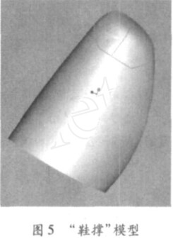 下面 ,圖 5所示的“ 鞋撐 ” 模型 ,是用實體造型方法繪制的工件三維圖形,在數(shù)控銑床上加工出該工件曲面時加工中刀具軌跡生成時的進(jìn)退刀方法的確定 ,關(guān)系到許多重要參數(shù)的選取 ,也關(guān)系到銑刀運動軌跡的自動生成即數(shù)控程序的自動生成