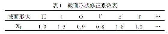 輸入層為6個神經(jīng)元 x1 , x2 , x3 , x4 , x5 , x6 , m =6 ,它們分別對應(yīng)于數(shù)控加工零件的截面形狀、 加工面形狀特征、 材料種類、 毛坯狀態(tài)、 零件尺寸、 加工設(shè)備各加工參數(shù)。對于離散型的變量以經(jīng)驗修正系數(shù)作為數(shù)值輸入 ,截面形狀修正系數(shù)表如表1所示。