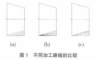 上述三種切削路線中, 如果起刀點(diǎn)相同, 則平行法車錐體路線最合理, 生產(chǎn)中也常用此法進(jìn)行加工。